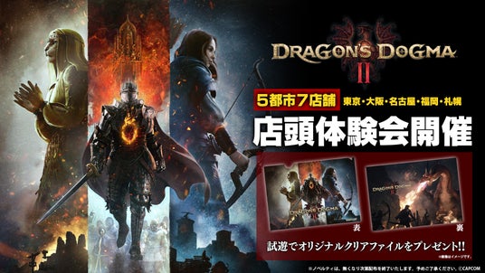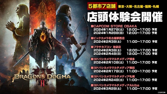 2024年3月22日に発売予定の『ドラゴンズドグマ 2』の店頭体験会が、全国5都市7店舗で開催される。また、体験会に参加した人には、オリジナルクリアファイルが先着でプレゼントされる。カプコン直営店でも開催される。
