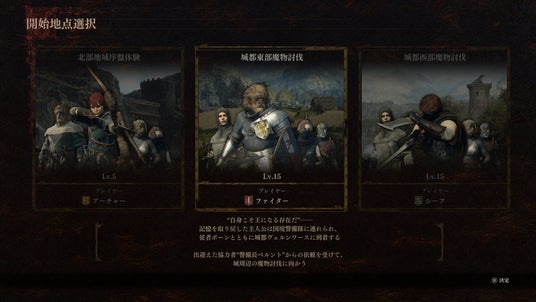 試遊内容は、「アーチャー」「ファイター」「シーフ」のプレイヤージョブが異なる3つの開始地点から選択可能