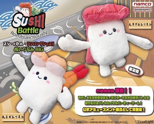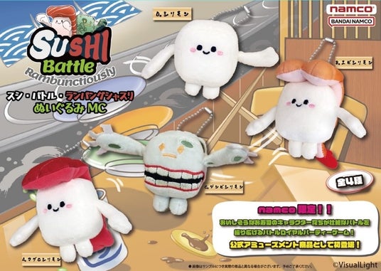 『スシ・バトル・ランバングシャスリ』開発会社のVisual Lightは、日本オート玩具社と、キャラクターグッズ制作もしていて、バンダイナムコアミューズマンで「ナムコ限定」としてスシ・バトル・ランバングシャスリのぬいぐるみマスコット4種、大型マグロシリモン、エビシリモンぬいぐるみ2種を販売しています。