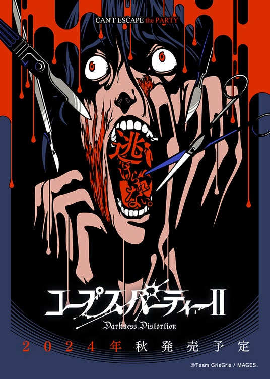 恐怖の宴がふたたび始まる同人ゲーム作品から、コンシューマ作品へと恐怖をアップデートし、アニメ化、劇場公開、さらには実写映画化まで戦慄の拡大をし続けてきた伝説のホラーゲーム「コープスパーティー」から、約9年ぶりとなる、シリーズ完全新作「コープスパーティーII Darkness Distortion」が2024年秋に発売します。