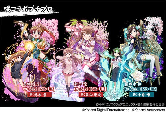 イベント期間中、『咲-Saki-全国編』で人気のキャラクター「高鴨 穏乃(たかかも しずの)」「新子 憧(あたらし あこ)」「園城寺 怜(おんじょうじ とき)」が今回のコラボのために描き下ろされたイラストや収録されたボイスで新たな「咲コラボプチプロ」として登場します。さらに、前回のコラボで登場した「宮永 咲(みやなが さき)」など清澄高校5名の「咲コラボプチプロ」も招来で復刻登場します。