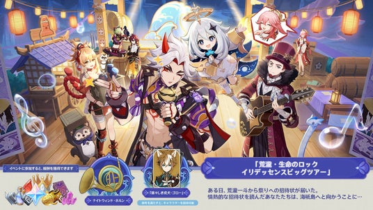 イベント期間中、「極思狂乱の大合奏」、「万千珍品の大収集」、「音韻律動の大交流」の各段階のコンテンツが開放され、各コンテンツをクリアすると、★4「雄々しき戒犬・ゴロー(岩)」を招待できるほか、「ナイトウィンド・ホルン」・原石・知恵の冠・キャラクター天賦素材・モラなどの報酬を獲得できます。