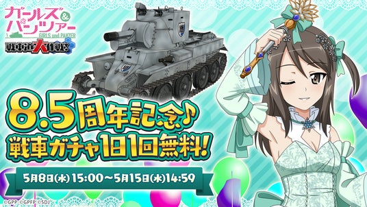 8.5周年を記念して、5月8日(水)15時から『8.5周年記念戦車ガチャ毎日1回無料キャンペーン』を開催いたします。