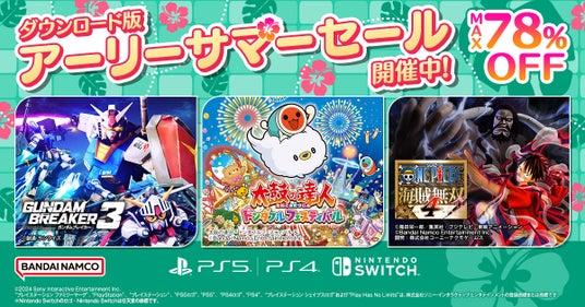最大78%OFF!バンダイナムコエンターテインメント『ダウンロード版セール』開催中!「ガンダムブレイカー3」や「太鼓の達人 ドンダフルフェスティバル」など