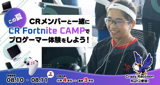 株式会社Game & Co.(本社:東京都港区、代表取締役:星 崇祥、読み:ゲームアンドコー、株式会社Brave group100%子会社、以下「Game & Co.」)は、人気プロゲーミングチーム「Crazy Raccoon(読み:クレイジーラクーン)」と共同で、2024年8月10日(土)・11日(日)の2日間、小学生から高校生向けのesportsプロゲーマー体験キャンプ『CR Fortnite CAMP』の第3回目を開催いたします。受講のお申し込みは、本日10時より先着順で受付いたします。