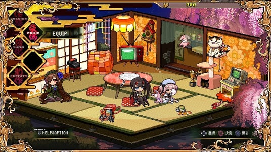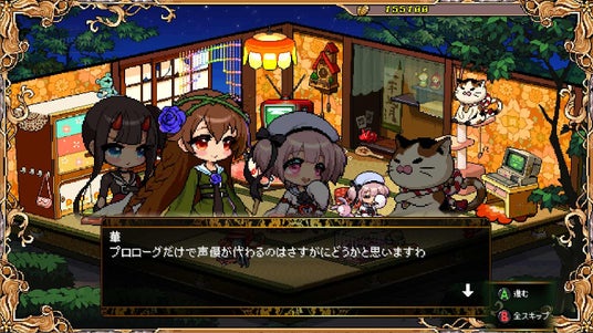 会話シーン。鬼っこ三姉妹と頭領のネコいろはによる会話で、ストーリーが進み、次のミッションへ向かいます。
