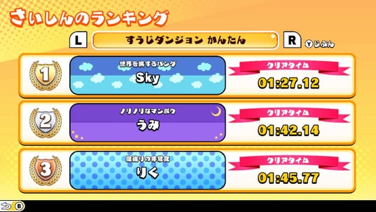 各ミニゲーム内のステージを全てクリアすると、そのミニゲームに対応した「ランキングにチャレンジ」が解放!クリアタイムやスコアで全国プレイヤーと月間ランキングを競い合える!