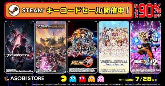 バンダイナムコエンターテインメント、ASOBI STOREにて最大90%OFFのSteamキーコードセール開催中!