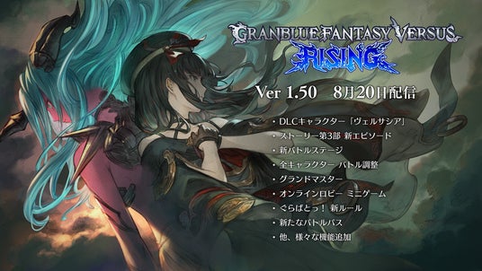 「Granblue Fantasy Versus: Rising」の次回パッチVer 1.50の配信日が8月20日に決定し、DLCキャラクター「ヴェルサシア」の情報が公開された。さらに、キャラクターパスPart.1の最後のDLCキャラクター「ビカラ」も2024年10月登場予定。