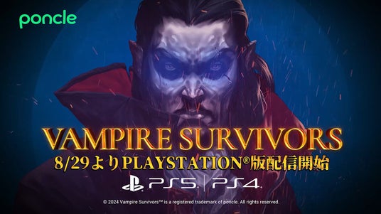 poncleは本日『Vampire Survivors』が8/29からPlayStation®5/PlayStation®4にて販売開始されることを発表しました。『Vampire Survivors』は英国アカデミー賞の「ベストゲーム」を受賞し、Steamにて22万件のポジティブ評価を得たインディーズゲームで、8月末からPlayStation®5/PlayStation®4版の販売を開始します。これまでのアップデート内容を含むベースのゲーム(40以上のキャラクター、80個の武器、トロフィー対応)に加え、全ての4つのDLCもPlayStation®5/PlayStation®4のリリース日から販売を開始します。