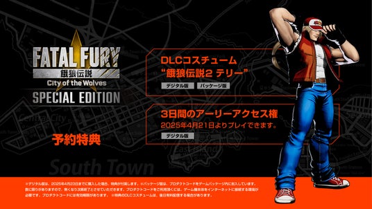 予約特典として、DLCコスチューム「餓狼伝説2 テリー」と、3日間のアーリーアクセス権を用意!