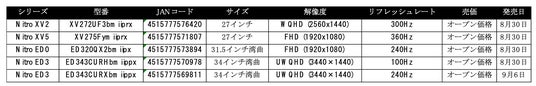 日本エイサー、新ゲーミングモニター4機種を8月30日から発売開始