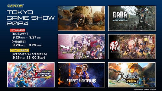 株式会社カプコンは、9月26日(木)から9月29日(日)まで開催される「東京ゲームショウ2024」に出展する。リアル会場への出展とオンライン番組で最新ゲーム情報を提供予定だ。