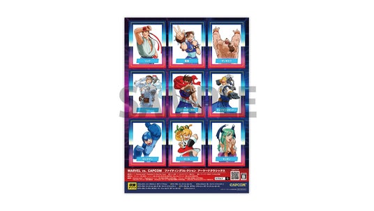 『マーヴル VS. カプコン クラッシュ オブ スーパーヒーローズ』に登場する、カプコンキャラクター9体が集合したステッカーになります。