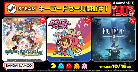 株式会社バンダイナムコエンターテインメントは、Amazonにて「STEAMキーコードセール」を開催中だ。セール期間は2024年10月16日まで。
