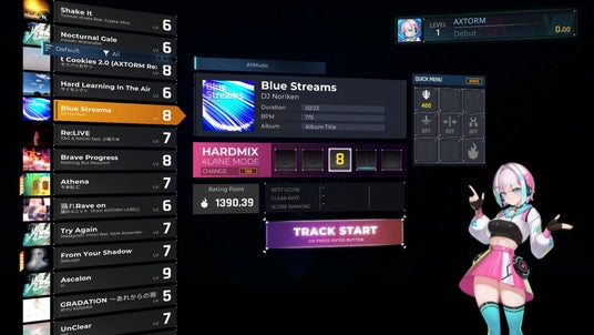 各2レーンでノートが流れてくる初心者向けの「LIGHT MIX」、各4レーンでノートが流れてくる熟練者向けの「HARD MIX」の2つのプレースタイルを搭載。合計7種類の譜面で幅広い難易度に対応している。プレー可能な楽曲数は配信開始時点で70曲以上。さらに正式リリースまでのアップデートにて20曲以上を無料追加予定。スコアを競う「GHOST BATTLE」や、腕前を測る「CHALLENGE」といったモードもアップデートで追加される予定だ。