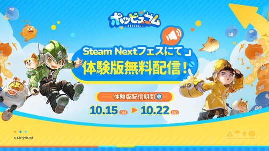 「Steam Next フェス」は、Valveが主催する定期的なオンラインイベントで、世界中のゲームファンに向けて、新作ゲームの無料体験版を提供します。Steamアカウントを持ってりる方なら誰でも気になるゲームを事前に体験することができます。『ポッピュコム』の最新体験版もSteamページにて無料でダウンロードできます。ぜひこの機会に試してみてください!- 開催日時:2024年10月15日(火)午前10時 ~ 2024年10月22日(火)午前10時(PT)
