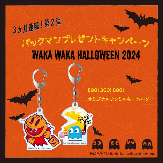 公式パックマンXアカウント(@BNEI_PACMAN_JP)にて3か月連続、プレゼントキャンペーンを開催いたします。本日より開催中の第2弾のプレゼントは「BOO! BOO! BOO! オリジナルアクリルキーホルダー」です。