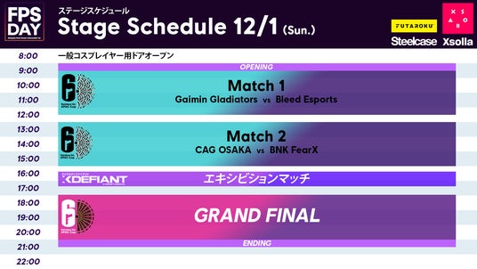 - 内容:『レインボーシックス シージ』 APAC Cup、『エックスディファイアント』 エキシビションマッチ、『レインボーシックス モバイル』試遊他