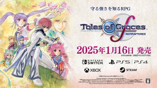 株式会社バンダイナムコエンターテインメントは、NintendoSwitc™/PlayStation5/PlayStation®4/Xbox Series X|S/Xbox One/STEAM®にて2025年1月16日に発売する「テイルズ オブ グレイセス エフ リマスター」について、ダウンロード版の予約受付を開始したことをお知らせいたします。