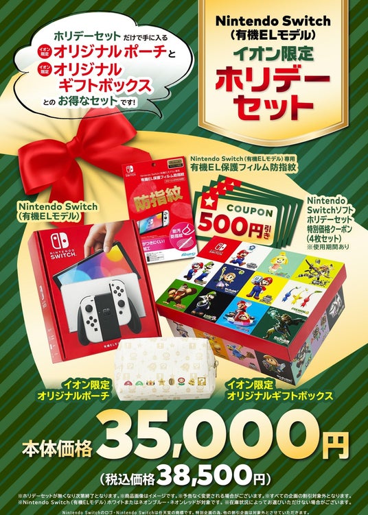イオン株式会社は、2024年11月22日(金)に「Nintendo Switch(有機ELモデル)イオン限定ホリデーセット」を発売する。