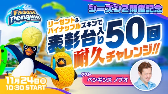 【シーズン2開催記念】「ペンギンズ ノブオが挑む!リーゼント&パイナップルスキンで表彰台50回耐久チャレンジ」配信決定!