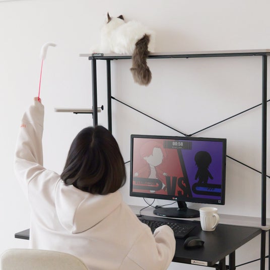 ゲーミングデスクを猫家具化する、モニターラック型のキャットタワー発売。お猫さまと共に「高み」を目指そう!