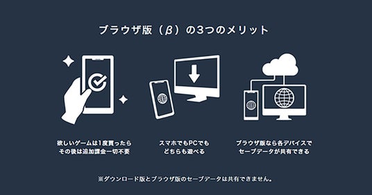 PCゲーム ブラウザ版(β)ではサーバー上に存在しているゲームをPC / スマートフォン / タブレットのブラウザでプレイすることができます。