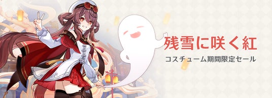 1月1日(水)アップデート後より、胡桃の新コスチューム「残雪に咲く紅」を、「ショップ-キャラ外観」にて常設販売します。