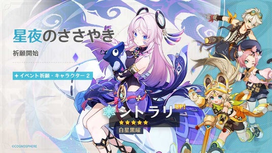 1月1日(水)アップデート後より、イベント祈願・キャラクター「古に宿る烈炎」、イベント祈願・キャラクター2「星夜のささやき」を開催しました。期間中、ピックアップキャラクターの出現確率が大幅にUPします。