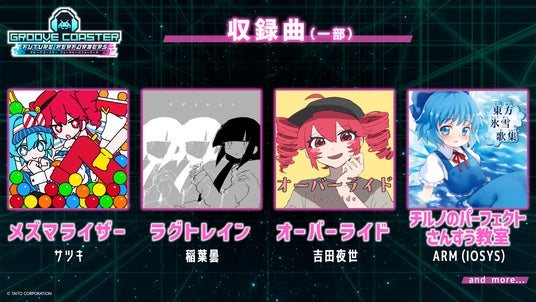 収録曲にはJ-POP、VTuber、ボカロ、東方アレンジなどの人気楽曲が多数含まれており、さらにシリーズ初のストーリーモードを搭載。さらに川島零士さん、佐倉綾音さん、白上フブキさん、さくらみこさんなどの豪華声優陣が登場し、音楽の世界で優勝を目指してプレイできる。タイトーはリズムゲーム『グルーヴコースター』シリーズの新作に大きな期待を寄せており、全世界で700万ダウンロードを超える実績を持つ本シリーズの新作に注目が集まっている。