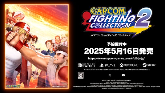 株式会社カプコンは、SNKとのタッグ作品を含む8タイトルを収録した『カプコン ファイティング コレクション2』を2025年5月16日に発売することを発表した。対応プラットフォームはNintendo Switch、PlayStation 4、Xbox One、Steamで、簡単操作で必殺技を繰り出せるシステムや修正が施され、より深く楽しめる内容になっている。収録タイトルには『CAPCOM vs. SNK 2000 PRO』や『パワーストーン』などが含まれ、オンライン対戦やカジュアルマッチ、ランクマッチなどのプレイモードが充実。初心者向けのトレーニングモードやボタンカスタマイズ機能、アーケード版のインストラクションカード、ミュージアムモードなども実装される。
