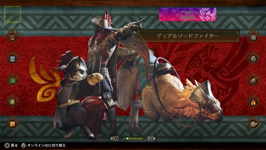 これまでの「モンスターハンター」シリーズで「ギルドカード」と呼ばれていた、ハンターの自己紹介カードが、本作では「ハンタープロフィール」に名前を変えて登場。設定項目を数多く用意しており、自由にカスタマイズして個性あふれる一枚を作り上げることができます。