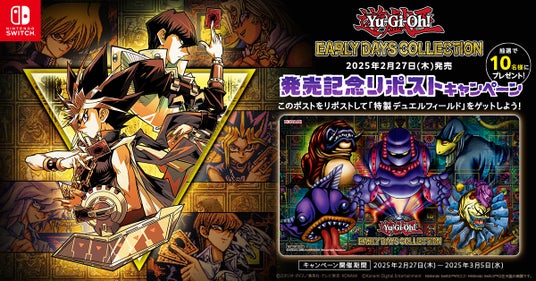 株式会社コナミデジタルエンタテインメントは、遊戯王カードゲーム25周年を記念した家庭用ゲーム『遊戯王 アーリーデイズコレクション』を本日発売したことをお知らせします。対応機種はNintendo Switch™とPC(Steam®)で、Steam Storeでの販売開始は本日2月27日(木)23時を予定しています。