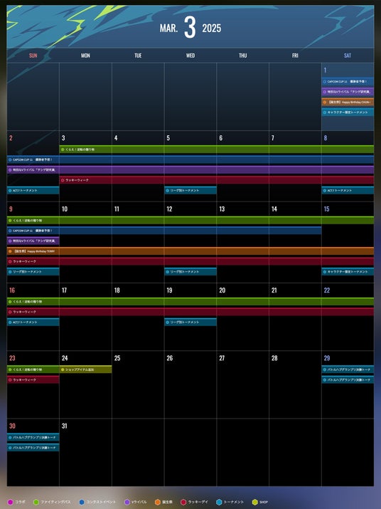 3月にはテリーの誕生祭や「CAPCOM CUP 11」、そして「ストリートファイターリーグ: ワールドチャンピオンシップ 2024」の開催に加え、プレイポイントを大量獲得できるラッキーウィークも実施されるため、ファンにとっては見逃せない充実のコンテンツがそろっている。