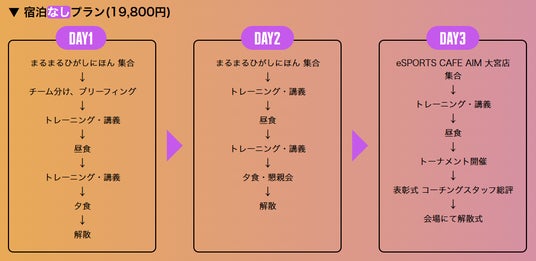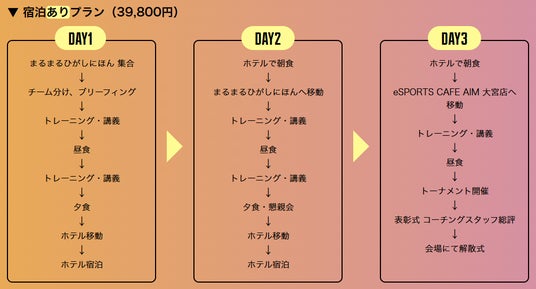 参加資格は高等学校や専修学校の生徒で、定員は30名。宿泊プランも用意され、会場にはeSPORTS CAFE AIM 大宮店や大宮ソニックシティが利用される。食事は地元の食材を基にしたオリジナルメニューが提供される。