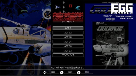 『ガルケーブ』は、コンパイルが1986年に発売した横スクロールシューティングゲーム。同社がこれまでに発売してきた『ファイナルジャスティス』『ガーディック』『ブラスターバーン』に続くシリーズ第4弾で、セガマスターシステムで発売され、のちにMSXに移植された。なお、Switchでは『ガーディック』が配信されているが、PC版EGGコンソールでは全作品が配信中だ。