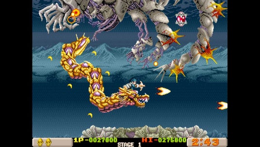 1989年にアーケード用に発売された横スクロールシューティングゲームです。プレイヤーは主人公である若き王カイアスとなり、巨大な龍バハムートと共に最終ステージの魔王を倒すことが目的です。主人公は龍の背に乗り武器で攻撃したり、龍で体当たり攻撃をしたり、龍の長い体を巻き付けて敵の攻撃から主人公を防御したりと、状況に応じて攻撃も防御にもなるバハムートはアイレムのシューティングの真骨頂と言え、プレイヤーがいつの間にか絆すら感じるようになるこのバハムートの存在こそが本作の最大の特徴となっています。