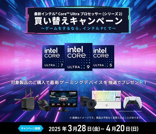 最新のインテル® Core™ Ultra プロセッサー (シリーズ2) でゲーミングデバイスが当たるキャンペーンが3月28日(金)スタート!
