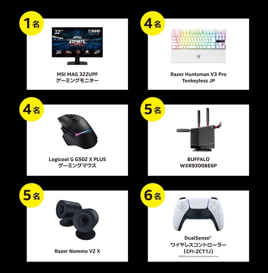 そのパフォーマンスをより多くの方に体験いただくため、対象のインテル® Core™ Ultra プロセッサー (シリーズ2) 製品を、期間中に対象店舗で購入すると、抽選で最新ゲーミングデバイスが当たるキャンペーンを実施いたします。