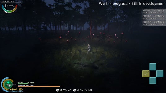 夜になると現れる「謎の敵」がプレイヤーの陣地を襲撃します。戦闘が得意なヒロインとの視点切り替えを駆使して、防衛と探索の両面に挑みましょう。