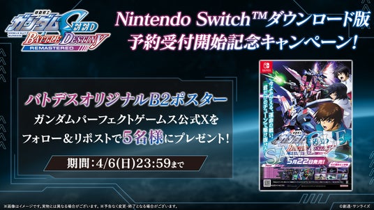 株式会社バンダイナムコエンターテインメントは、2025年5月22日に発売予定のNintendo Switch™/STEAM®用ゲーム『機動戦士ガンダムSEED BATTLE DESTINY REMASTERED』の予約受付を開始した。