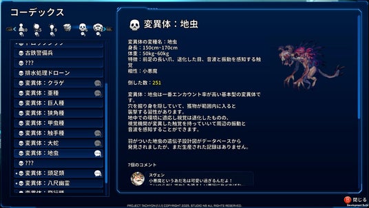 ストーリーに登場する用語や敵の情報がまとめられているコーデックス機能に挿絵を追加しました。挿絵が加わったことで、『PROJECT TACHYON』の世界観への没入度をより深めることができます。