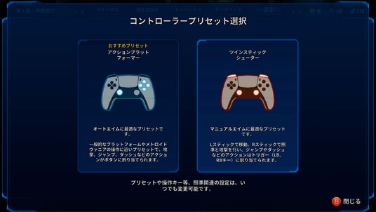 ①コントローラー操作方法に「ツインスティックシューター」追加