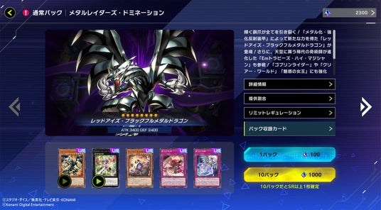 また、新たなセレクションパック「メタルレイダーズ・ドミネーション」を本日追加しました。「メタルレイダーズ・ドミネーション」は、「メタル化」テーマの「レッドアイズ・ブラックフルメタルドラゴン」や、「Em」テーマの「Emトラピーズ・ハイ・マジシャン」など、デッキ強化に役立つカードを多数収録しています。