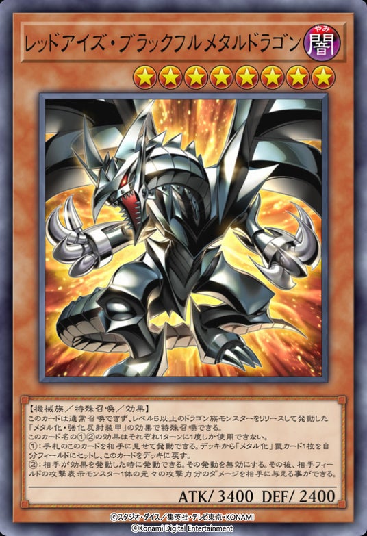 新セレクションパック「メタルレイダーズ・ドミネーション」輝く鋼爪が全てを引き裂く!「メタル化・強化反射装甲」によって新たな力を得た「レッドアイズ・ブラックフルメタルドラゴン」が登場!さらに、天空に舞う稀代の奇術師が進化した「Emトラピーズ・ハイ・マジシャン」も参戦!