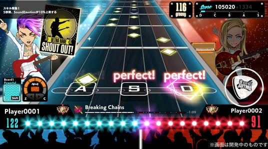 また、演奏の正確さに加え、ギターやエフェクターの性能、カスタムパーツの組み合わせが勝敗を左右するため、自分好みの理想的なエレキギターを創り上げながら楽しめる、戦略性の高い音楽ゲームとなっています。