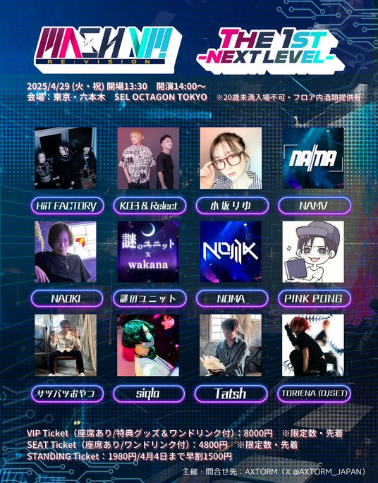 4月29日(火・祝)には、東京・六本木の「SEL OCTAGON TOKYO」にて、『MASH VP! Re:VISION』正式版リリース記念DJイベント『The 1st -NEXT LEVEL-』が開催決定!NAOKI、Tatsh、小坂りゆ、TORIENA、NOMA、KO3&Relectをはじめ、豪華アーティストが勢ぞろい!