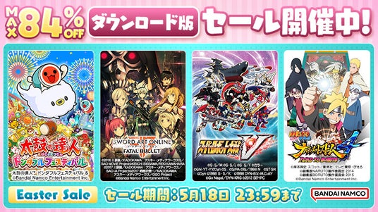 株式会社バンダイナムコエンターテインメントは、2025年4月23日から5月7日までの期間に、PlayStationとNintendo Switch向けのダウンロード版ゲームセールを開催する。