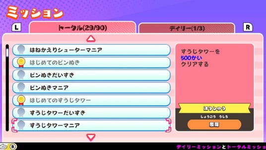 「トータルミッション」は全部で99種類あり、ミッション達成でさまざまな報酬がもらえます。